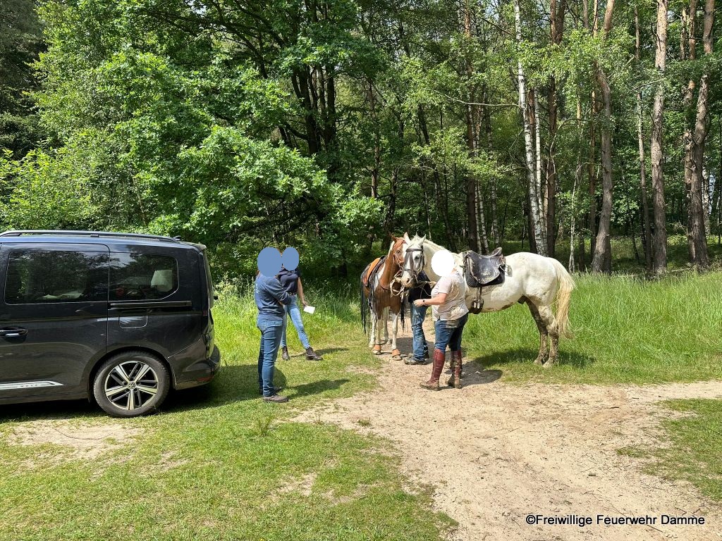 Wegen der besonderen Beschaffenheit des Untergrundes des ehemaligen Klärteiches sackte ihr Pferd im schlammigen Boden ein und konnte sich nicht mehr aus eigener Kraft aus dieser Lage befreien.