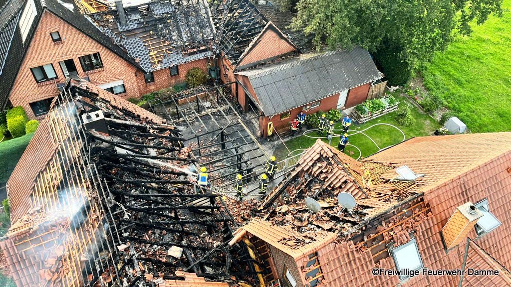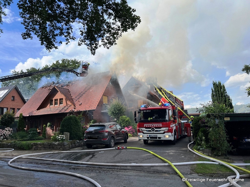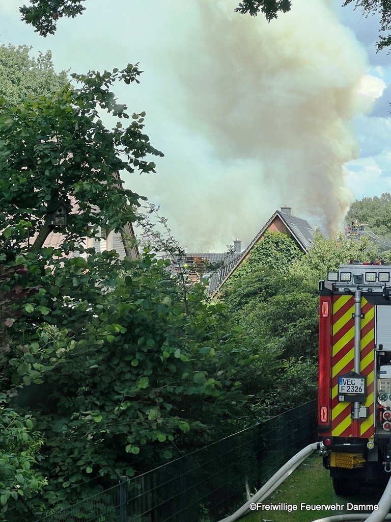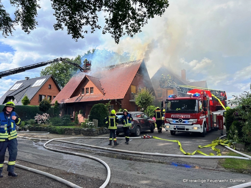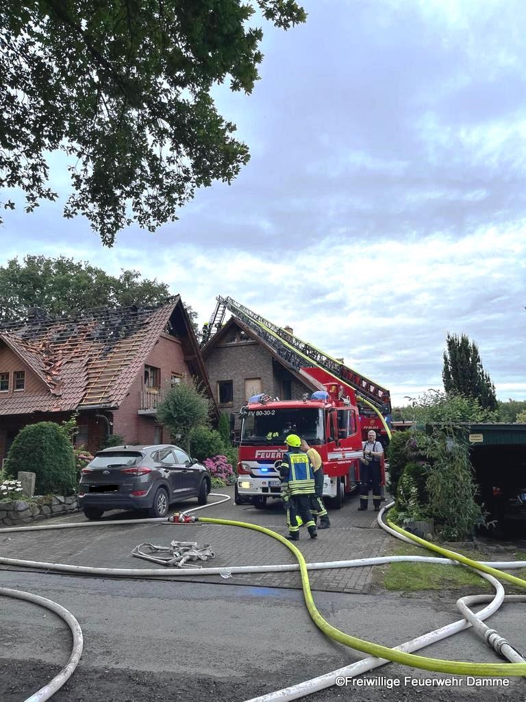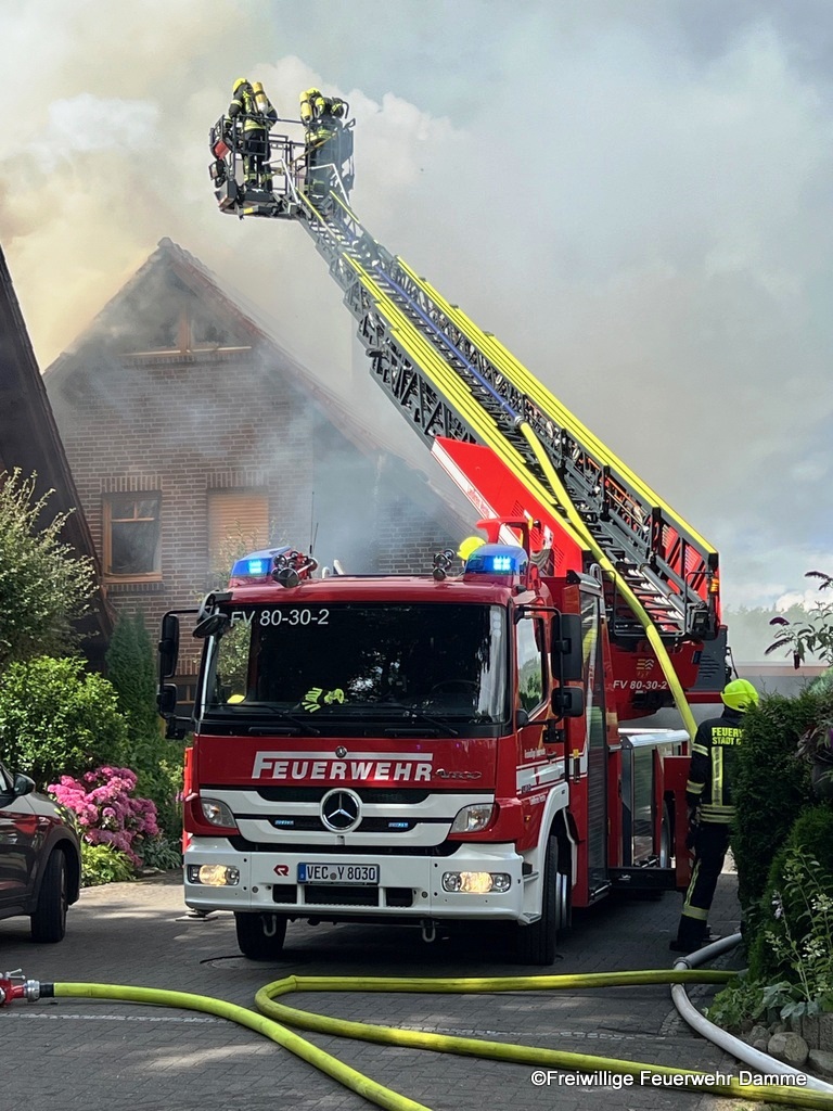 Die Feuerwehr Damme führte eine Brandbekämpfung von der Drehleiter aus durch. Um 18:07 wurden nochmals Atemschutzgeräteträger der Feuerwehr Damme nachalrmiert.