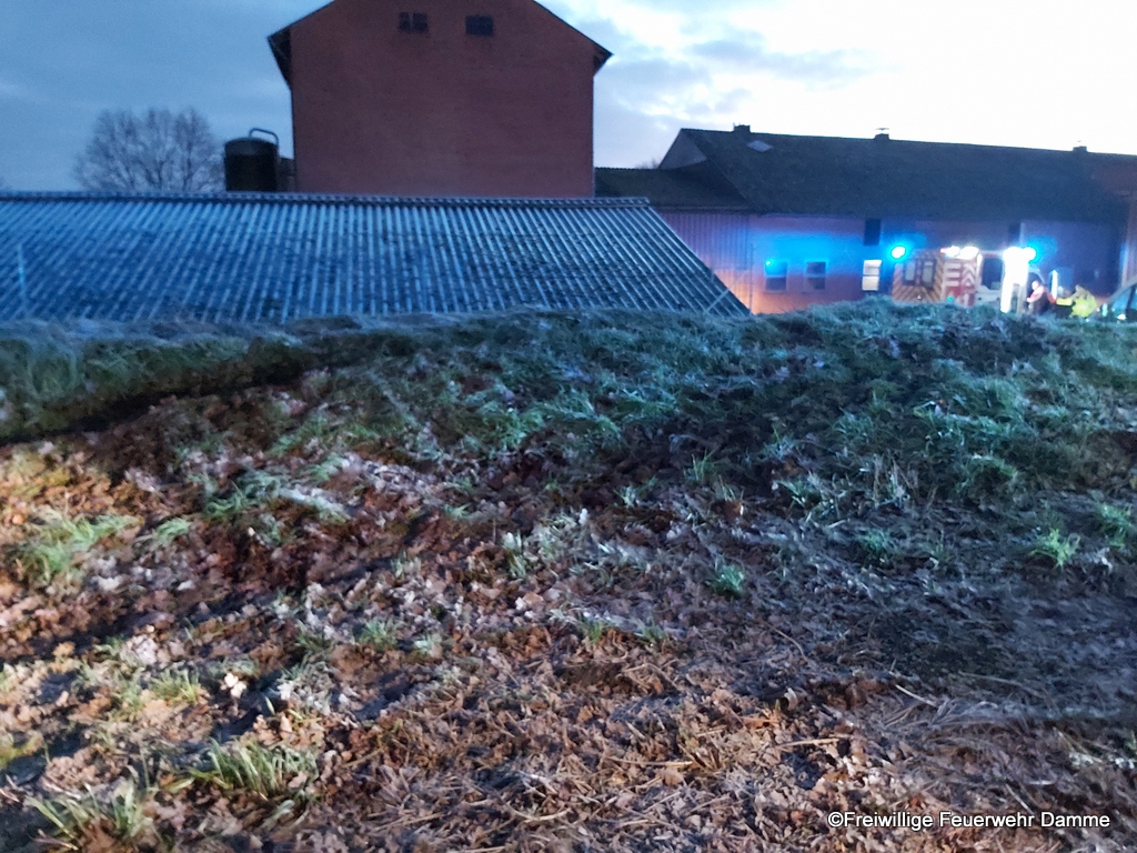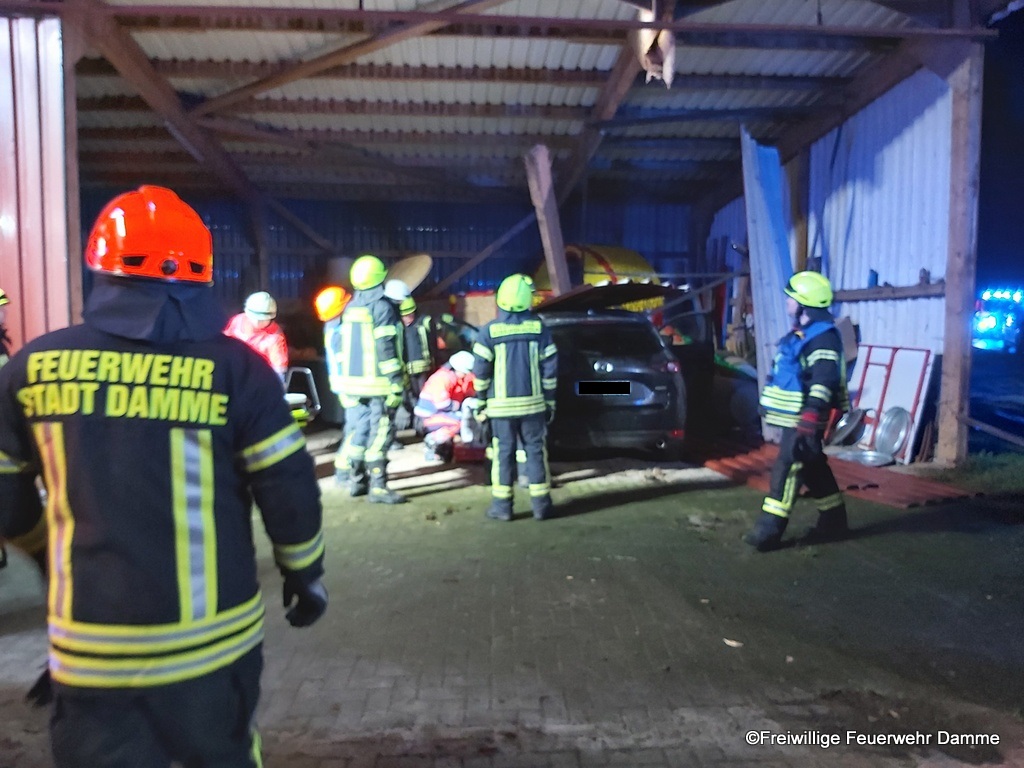 Im Einsatz: PKW StadtBM, HLF 20, RW, LF 20, ELW 1, FF Borringhausen, RTW 2 Malteser Damme, NEF Malteser Damme, Polizei Damme.
